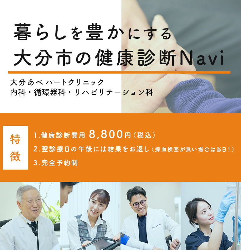 大分市国民健康保険では、メタボリックシンドロームに着目した特定健診を行っております。対象となる方は、無料で特定健診を受けることができます。桃色の特定健診受診券が5月初旬に郵送されますので、お持ちの上ご来院ください。